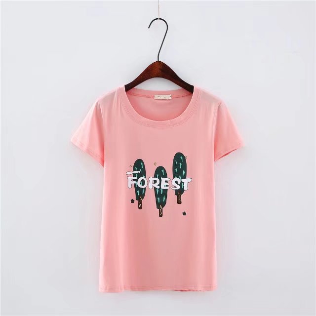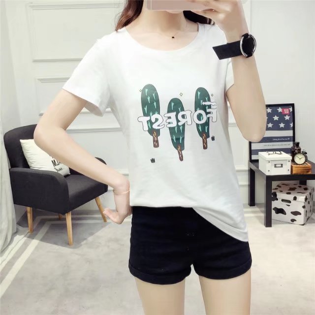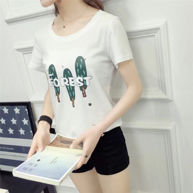 HJ9644 夏季韓版百搭修身顯瘦印花t恤女短袖學生休閑半袖體恤上衣
